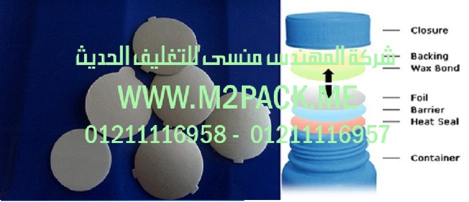 وكما تظهر بالشكل فهي تتكون من غطاء الحاوية وطبقة خلفية وفوم PS وطبقة لاصقة حيث توجد جميعها فوق الحاوية ممثلة للغطاء المستخدم في غلق الحاويات المصنوعة من المواد PE – PET – PVC – PP – والزجاجات الزجاجية