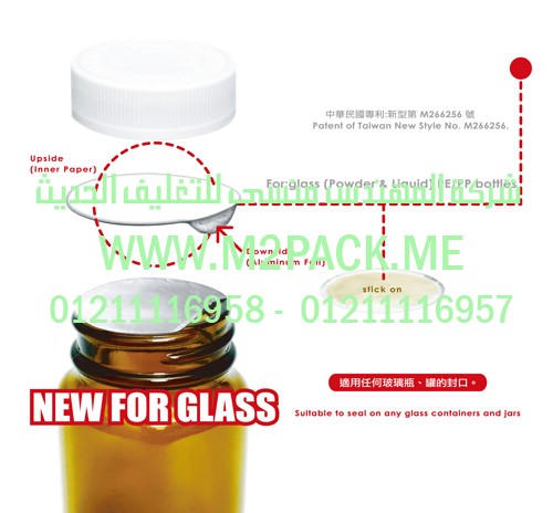 غطاء – طابة- الاندكشن للزجاجة – القارورة والقنية – الزجاج الذي نقدمه نحن شركة المهندس المنسي للتغليف الحديث و الصناعات الهندسيه – ام تو باك