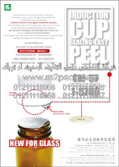 غطاء – طبة – الاندكشن للزجاجة – القارورة والقنينة الزجاج الذى نقدمه نحن شركة المهندس منسي لتوريد جميع مستلزمات التغليف الحديث من مواد التعبئة و التغليف و الصناعات الهندسيه – ام تو باك